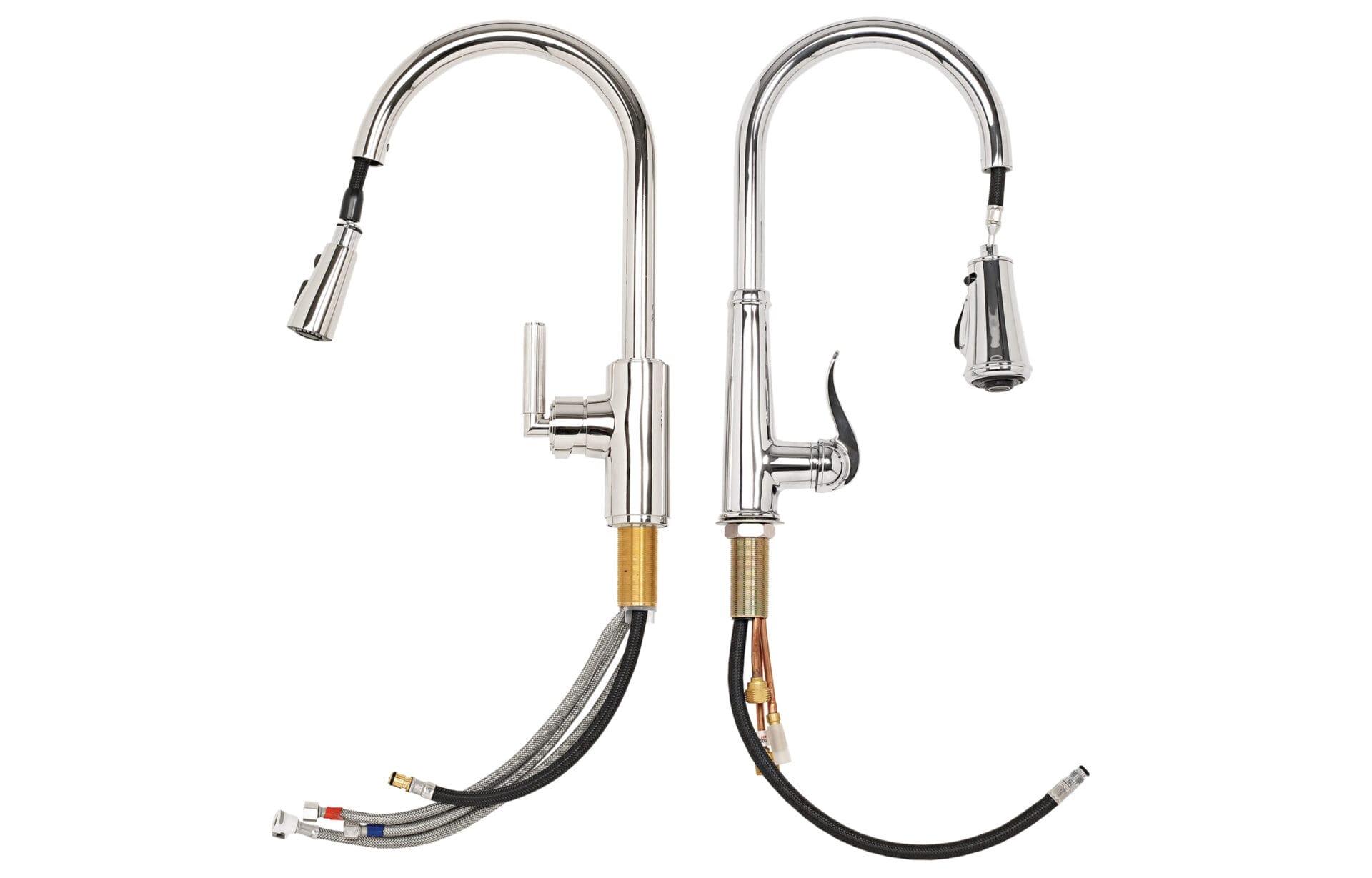 First, the good news. Lots of pull-down faucets have an attractive profile and some sort of warranty. Most are made mainly of brass with a stain-resistant finish and have a valve with ceramic discs, which is just what the plumber ordered. Now for the hard part. There are dozens of brands, with prices all over the map. So This Old House looked at a luxury pick and its bargain counterpart to identify the qualities to ask about when you consider all the options in between. Surprises included an extra-long spray hose on the bargain model for easy maneuvering around a supersized roasting pan, and the DIY-ready fittings on the high-end model. Check out their other features to help guide you through your next purchase.