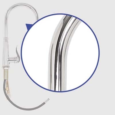 Smooth braided-nylon hose extends 18 inches.