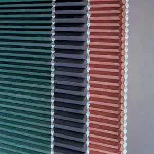 Pleat sizes begin at around 3/8 in. and go up to 2 in. With their crisp, tailored lines, honeycomb shades work well in contemporary surroundings and in windows without molding. Many people like the subtle look of honeycomb shades that blend with the wall color, but you can create a dramatic effect by contrasting the shade color with the walls. If you want a softer treatment, choose fabric-look shades and pair them with boldly patterned draperies or an upholstered valance.