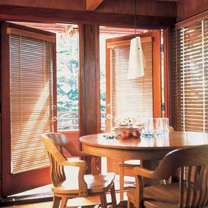 Wood and faux-wood horizontal blinds, which cost more than their metal and vinyl counterparts, are especially popular today. They are equally at home in traditional paneled or rustic-style homes and more modern spaces. Wood blinds destined for use in high-humidity rooms should be warp- and mildew-resistant.
