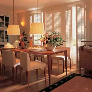 Shutters, with their distinctive appearance, inject a lot of character into a room. The width of the slats has a lot to do with that. Vanes can measure up to 5 1/2 in. (these are called “plantation shutters”) and down to 3/4 in. Stained or painted solid-wood versions are traditional choices. Smooth white louvers, often made of vinyl, are more contemporary, especially when they’re hung in an angled- or arch-top window. Most shutters have flat slats with ends cut at 90°. For something a little more distinctive, look for slats with rounded ends and beaded and S-shaped blades. With adjustable louvers, control rods can be centered, offset or hidden from view.